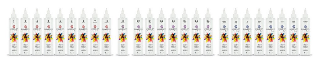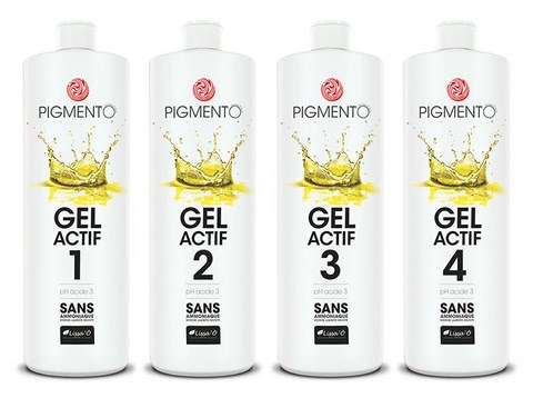 Les gels actifs Pigmento contiennent une faible concentration d’eau oxygénée dont le rôle est d’ouvrir les 4 à 6 premières couches d’écailles pour y polymériser les pigments. Ils sont certifiés sans ammoniaque, sans SLS (Sodium Laureth Sulfate) et avec un Ph acide de 3 environ.